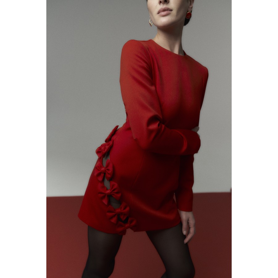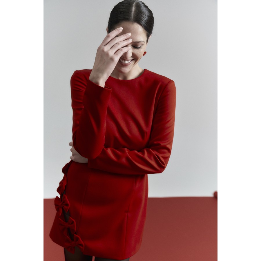 Платье с бантами красное