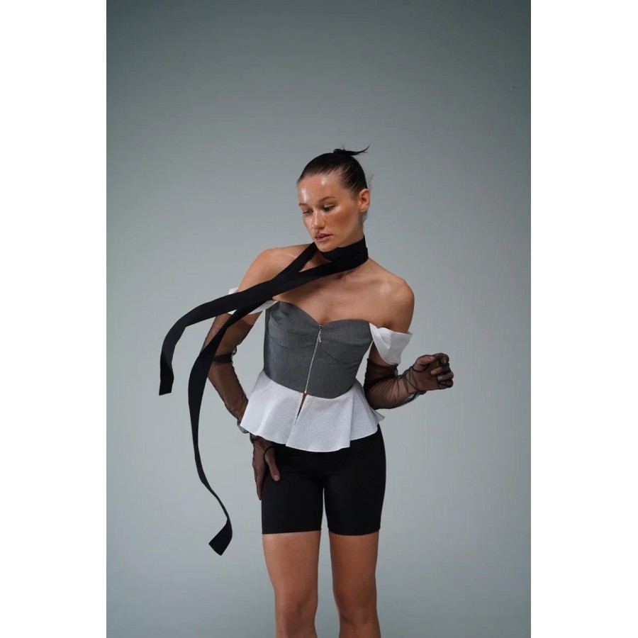Корсет на молнии с баской из хлопка