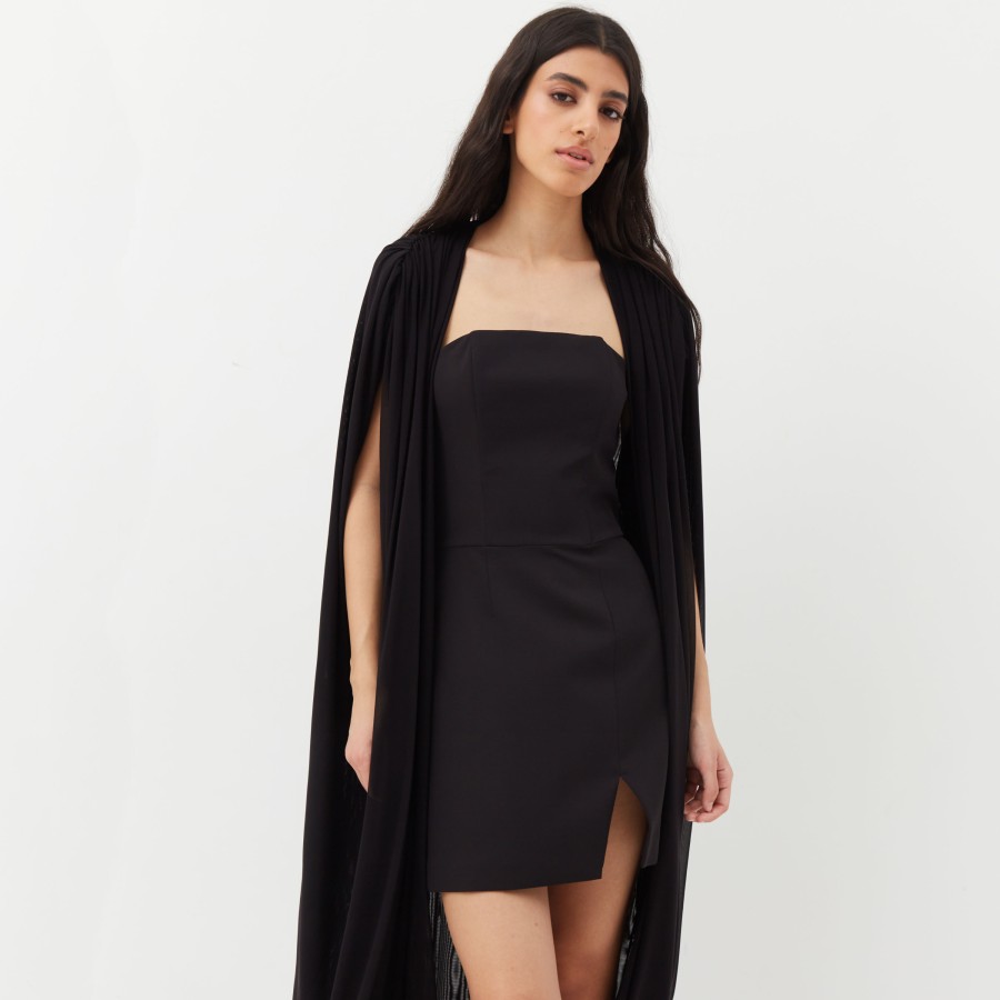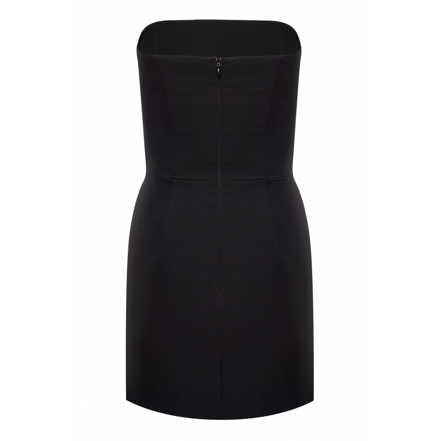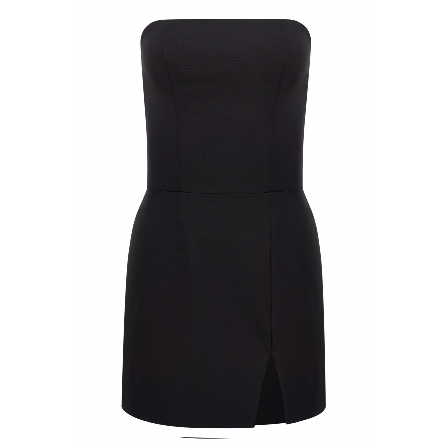 Соблазнительное корсетное женское черное мини-платье с разрезом по ноге. Благодаря юбке-трапеции изделие очень комфортно в носке, а лиф из плотной ткани поможет создать идеальную линию декольте. Длина изделия 65 см