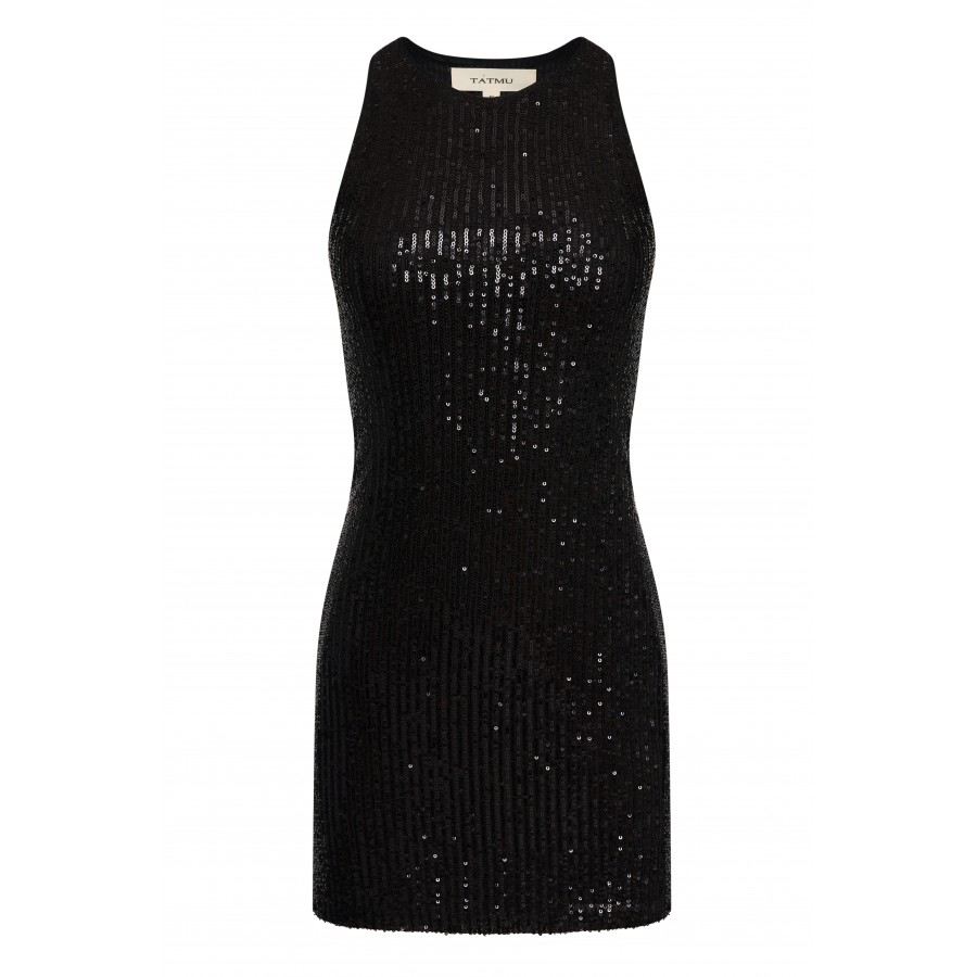 Платье майка мини из черной пайетки