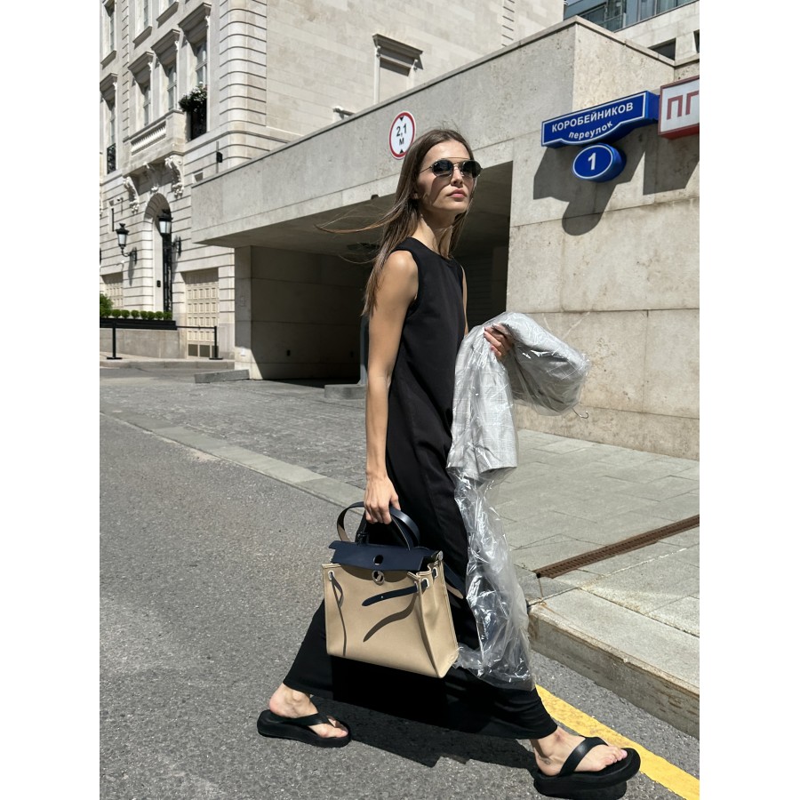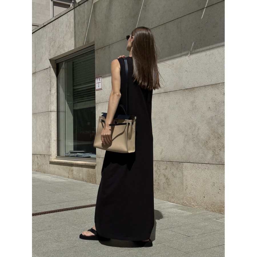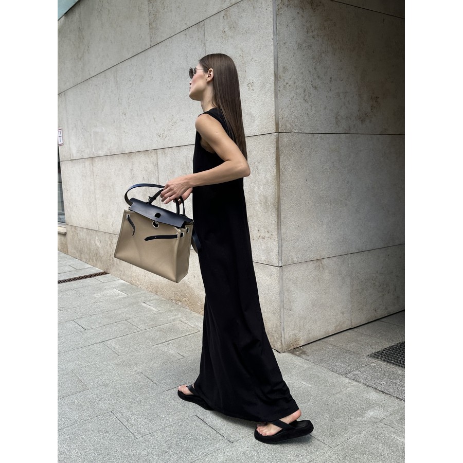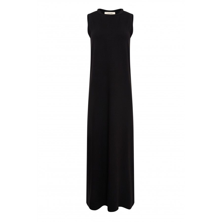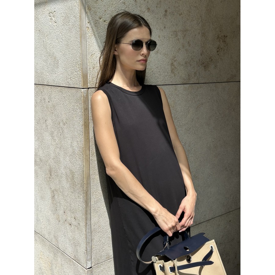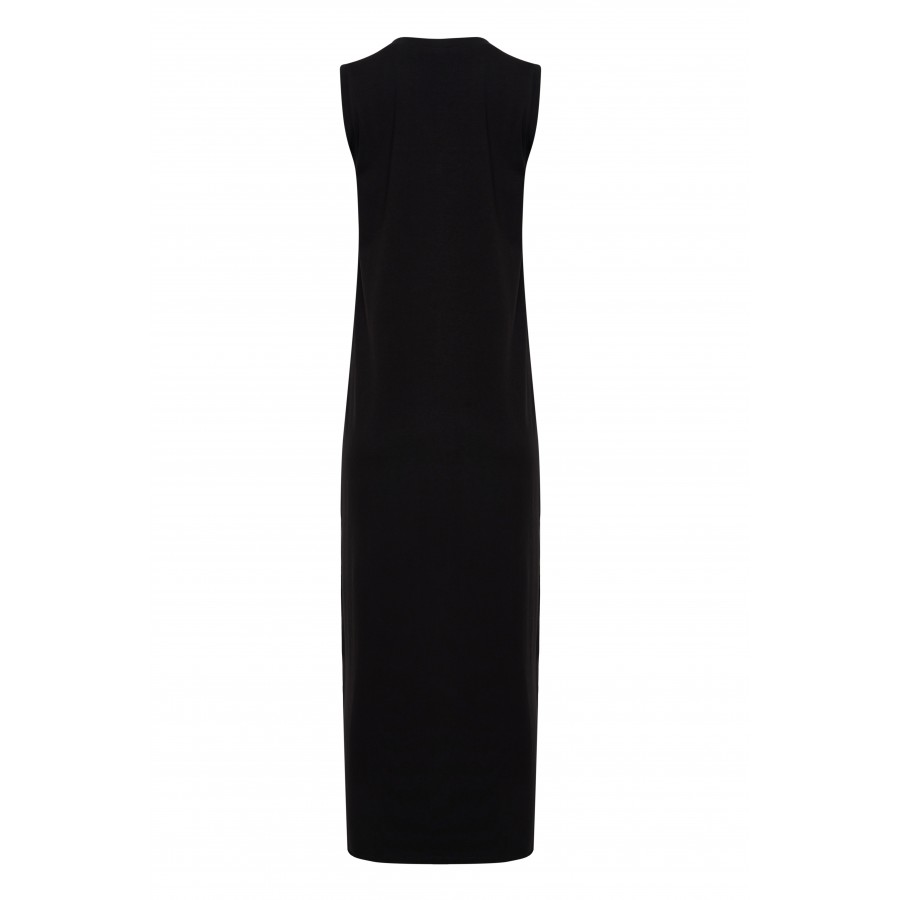 Платье из черной кулирки, длина миди, без рукавов. Свободный силуэт, отличная посадка, универсальная базовая модель.