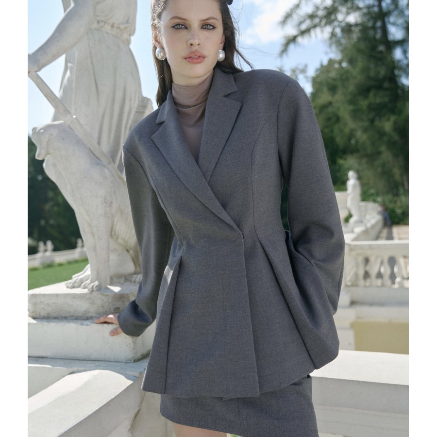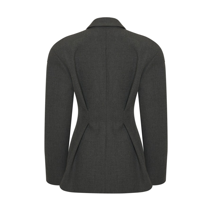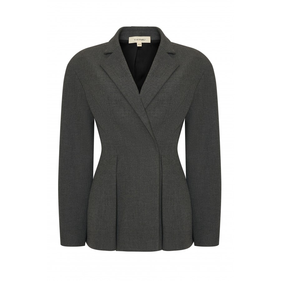 Жакет с объемными плечами из серой костюмной ткани