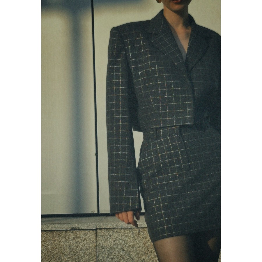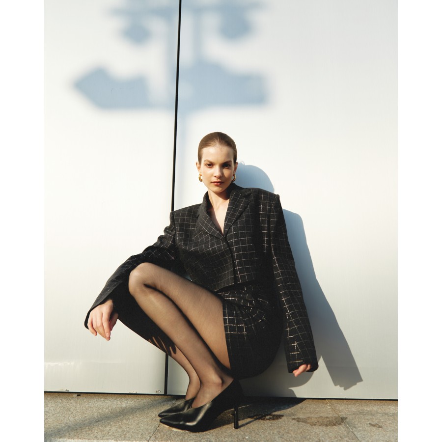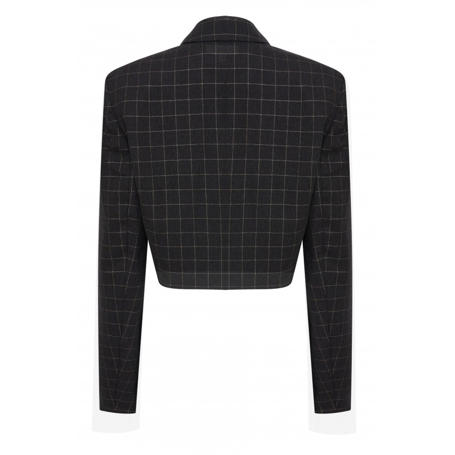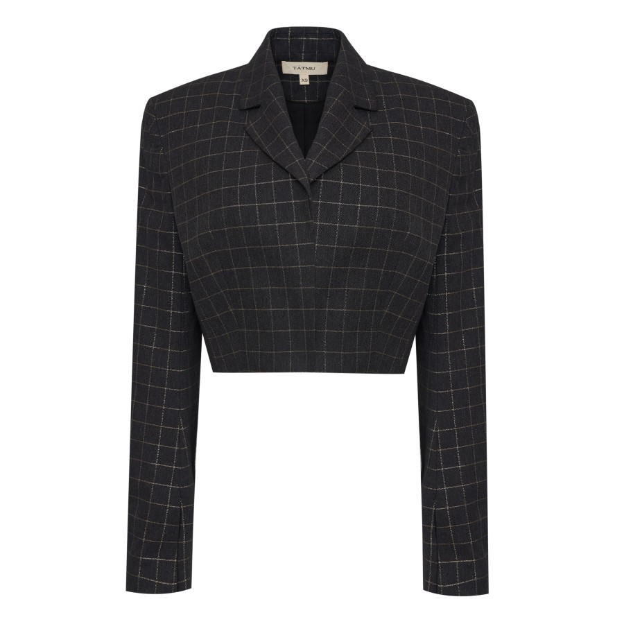 Жакет укороченный из черной костюмной ткани в золотую клетку