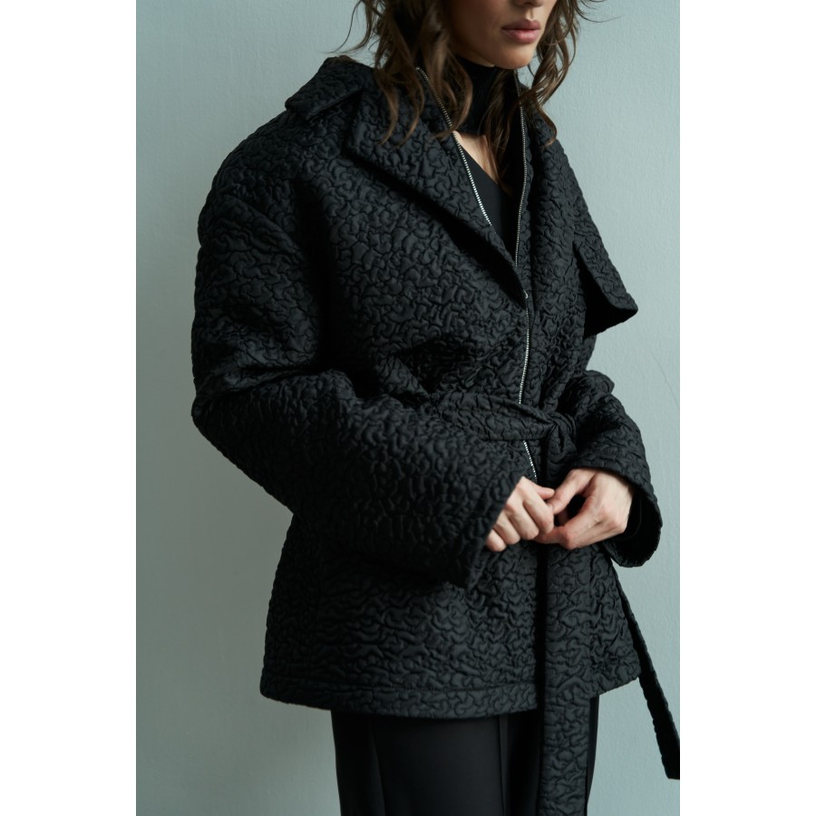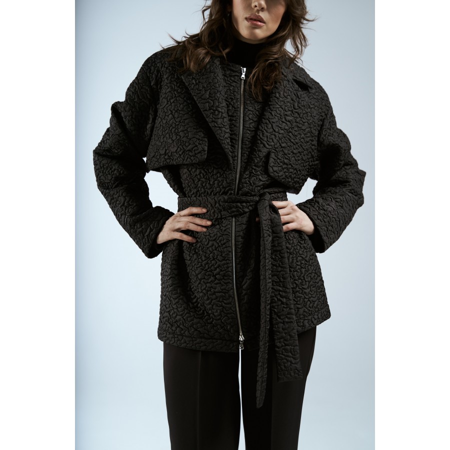 Куртка на молнии с поясом из фигурной стеганой ткани