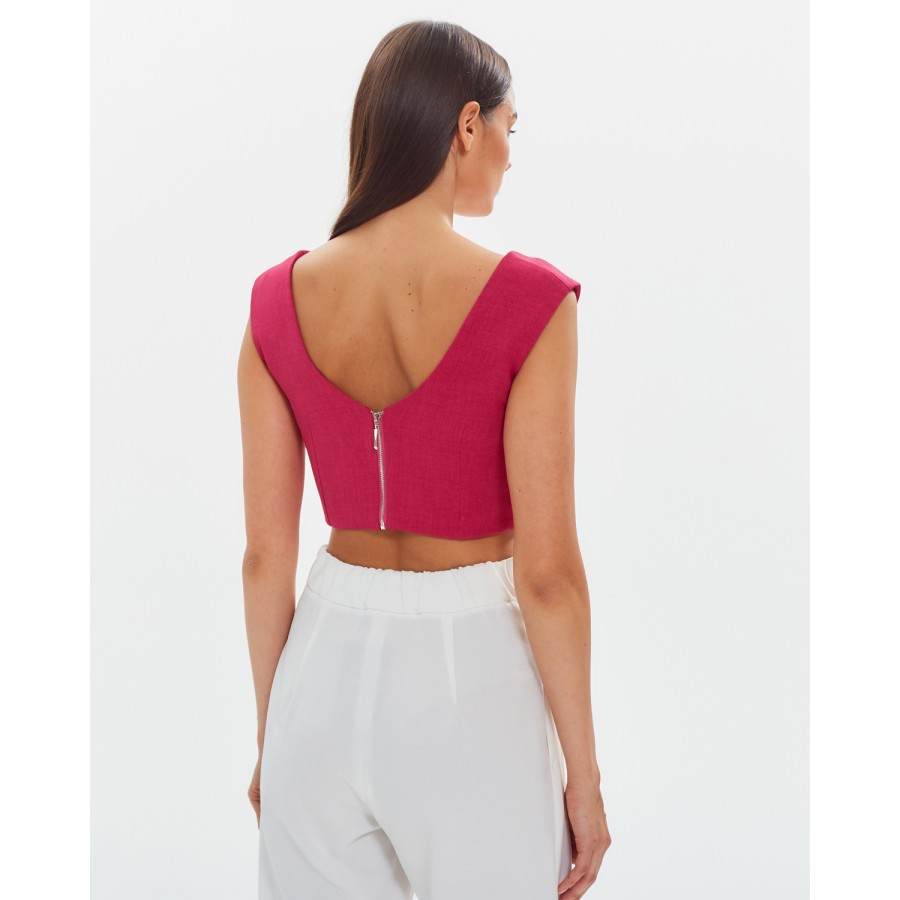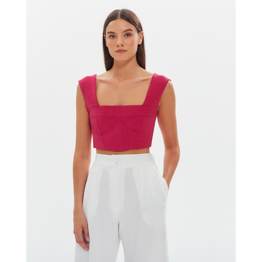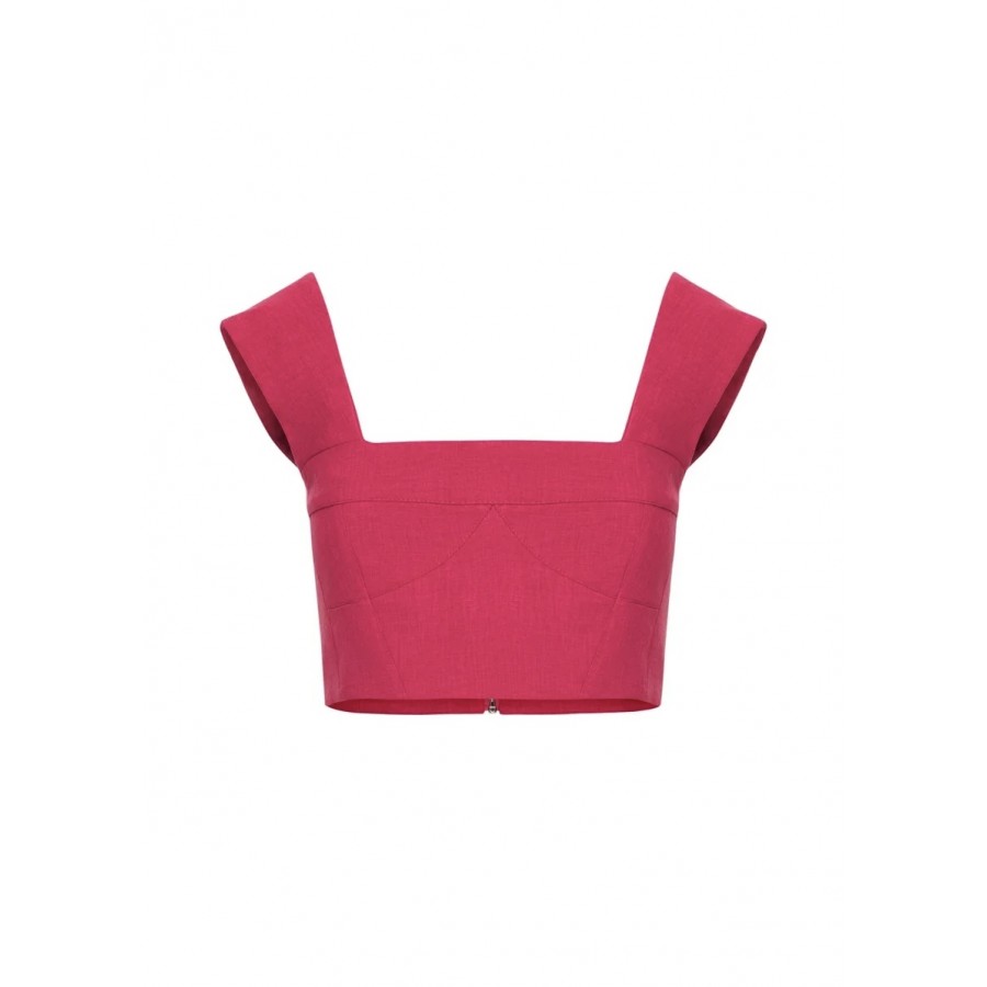 Кроп-топ на широких бретелях Лен Фуксия
