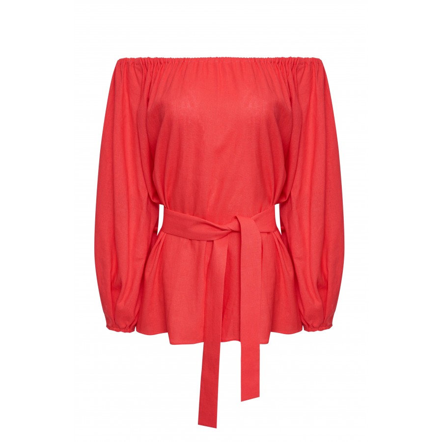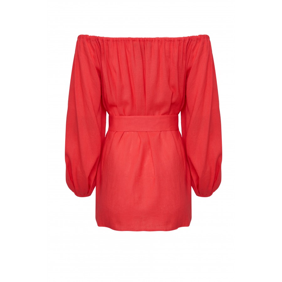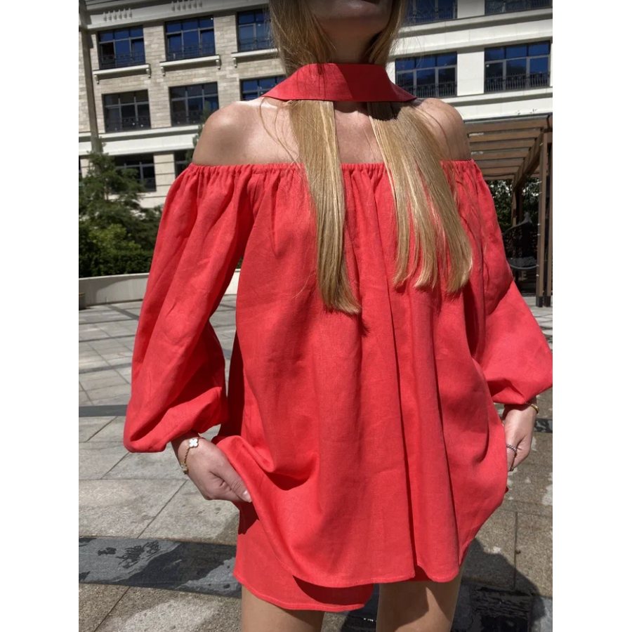 Летняя, легкая туника с открытыми плечами из льна . В комплекте идет пояс с помощью него можно сделать несколько интересных образов