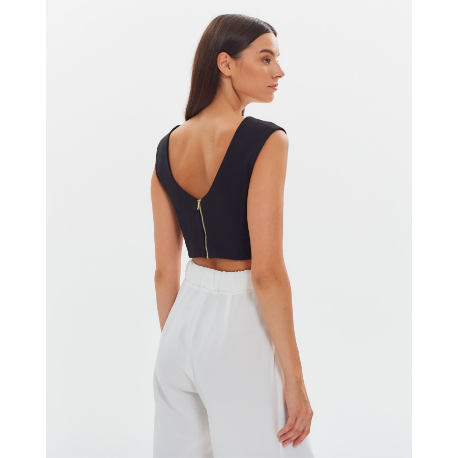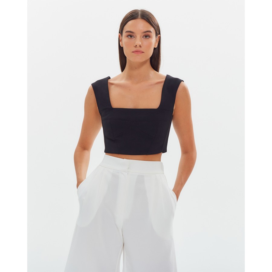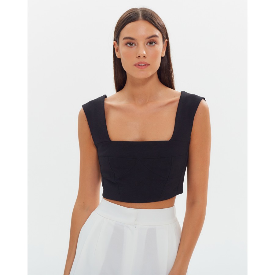 Кроп-топ на широких бретелях Лен Черный